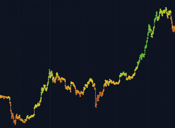 A colour coded heatmap that looks at the % increases of the 200 week moving average over time.