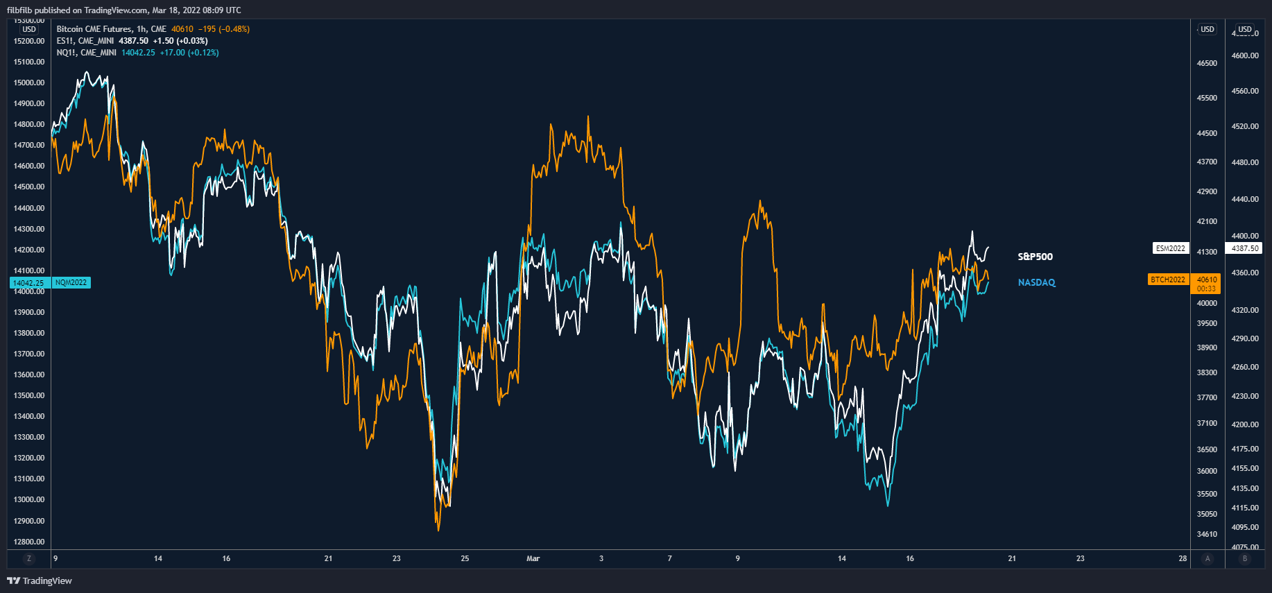 Bitcoin vs S&P500 vs NASDAQ