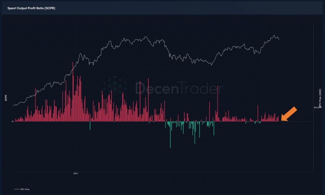 Fig 3: Spent Output Profit Ratio (SOPR) reset to neutral.