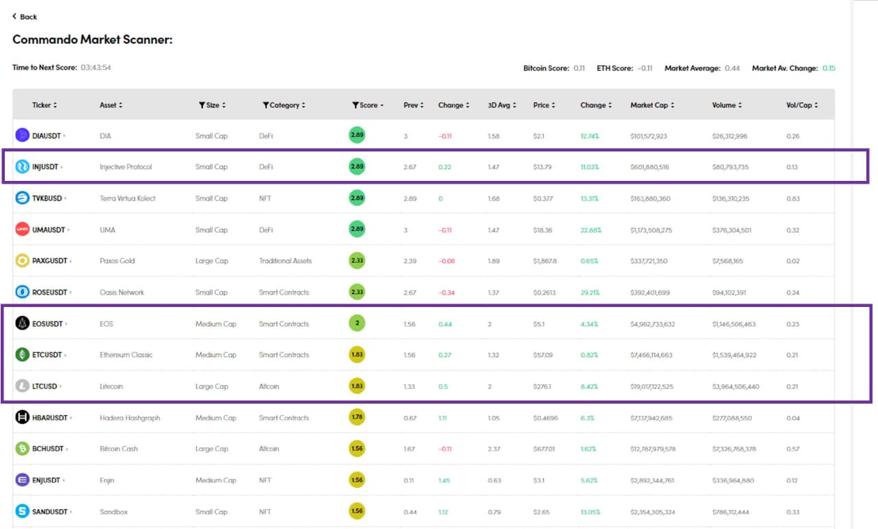 $EOS, $ETC, $LTC are all posting strong scores on Commando with positive change scores also.  These are ones to watch this Friday heading into the weekend and may present good long trade opportunities.