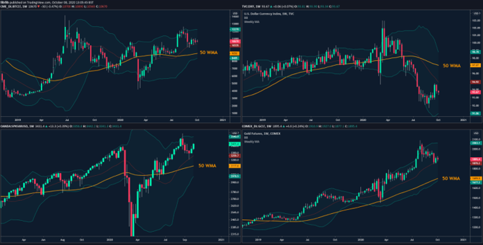 Bitcoin has been largely at the mercy of the correlation to the traditional markets since the 2020 black swan event. Traditional markets being the S&P500 and Gold are also resting on their 20 WMAs with the opposite for the DXY which has proven to be inversely correlated.
