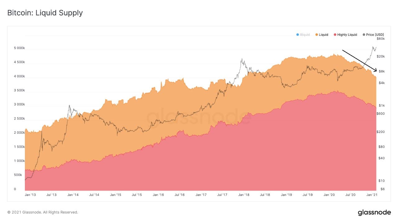 This Liquid supply is only about 4 million bitcoin and you can see that the number of them has continued to decrease over the past 6-9 months as more people look to HODL their bitcoin.