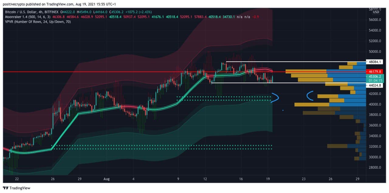 Fig 5: Bitcoin ranging on the 4hr chart with volume node support at $42,000.