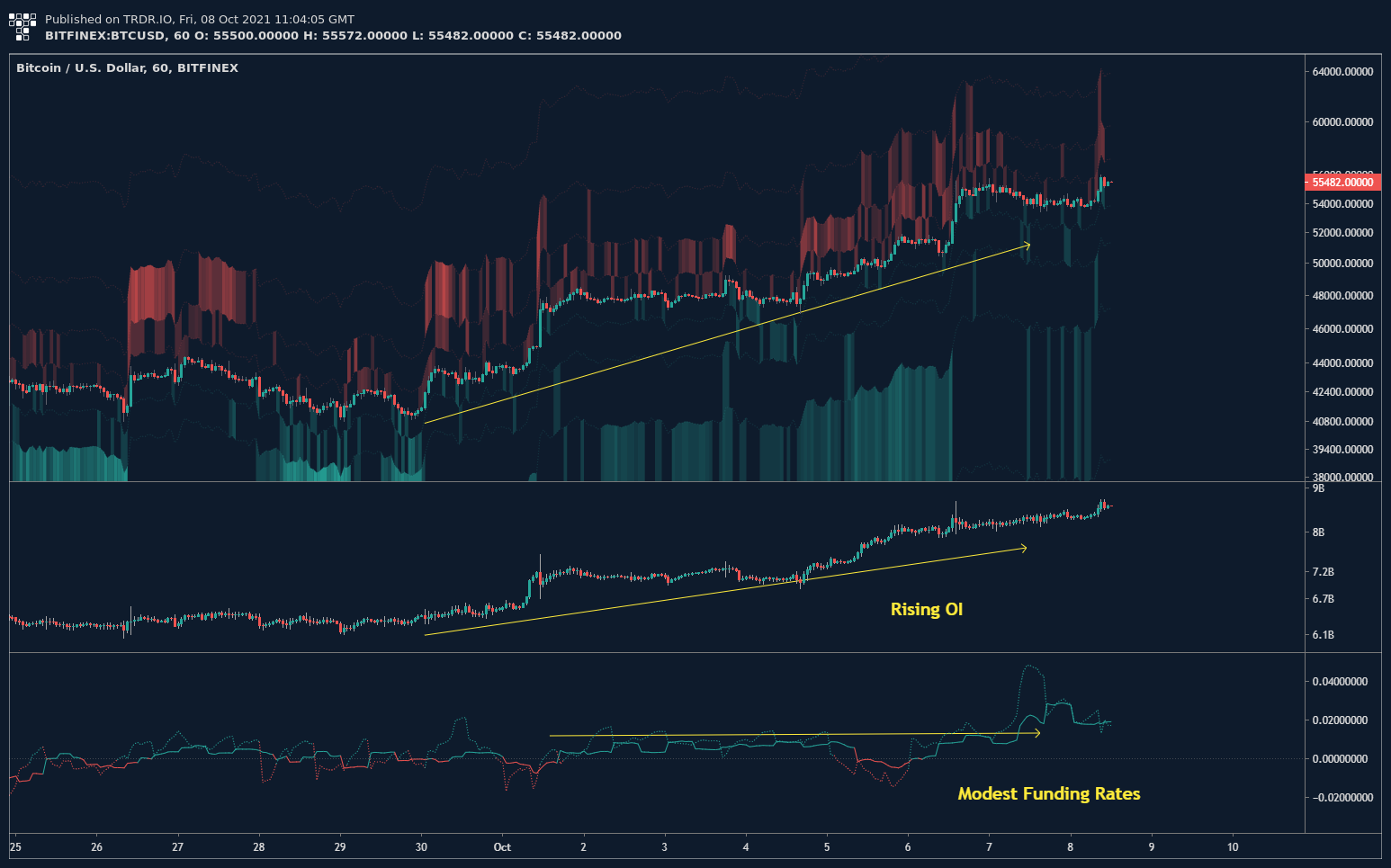 Open interest, alongside modest funding rates and a deep bid, meant that the bulls were able to push prices higher while the bears continued to add to their inevitable demise as can be seen in the below chart.
