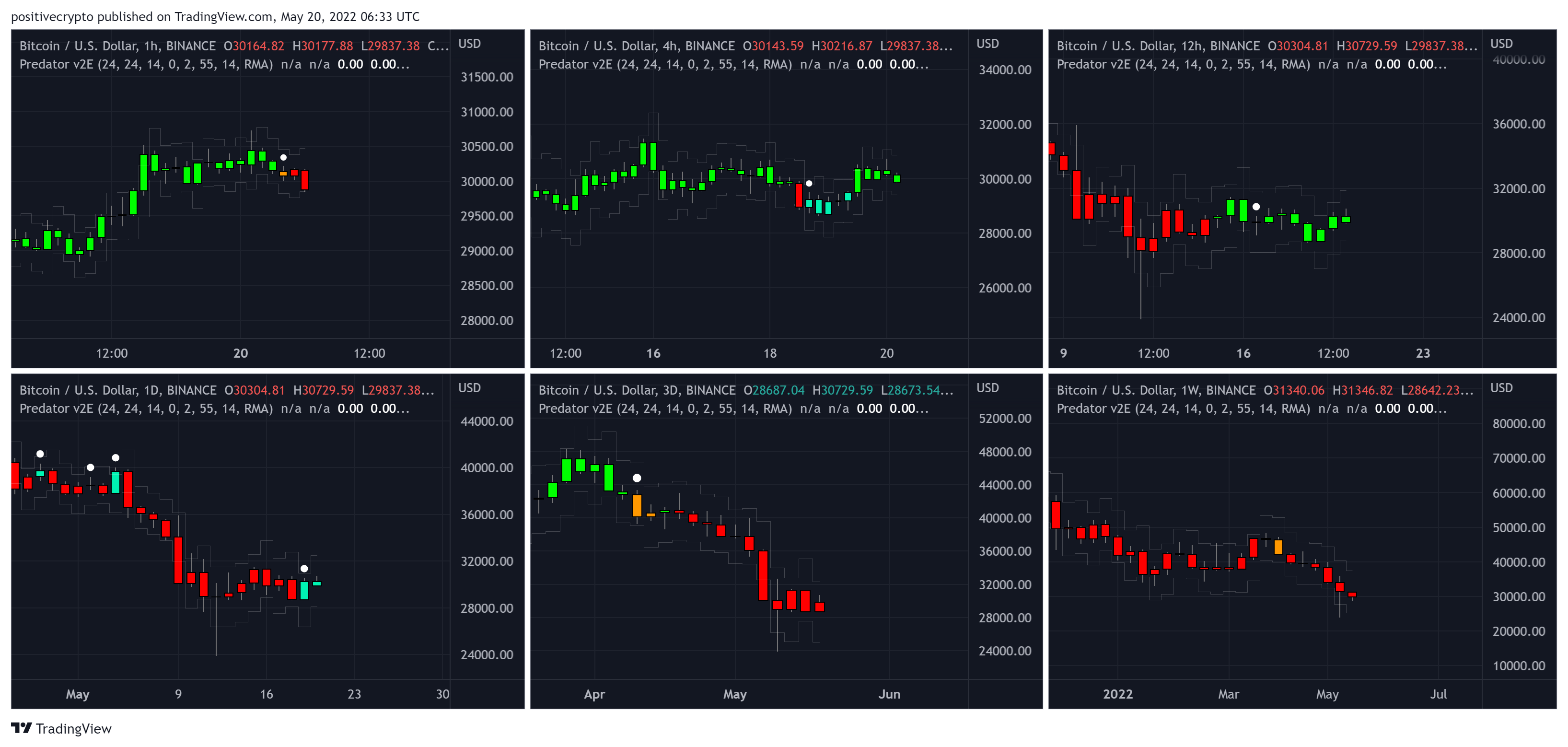 Predator cross timeframe is looking more positive than it did before last week’s crash. We are now starting to see some timeframes turn bullish. However, the 1hr is currently bearish which we will need to monitor closely heading into the weekend.