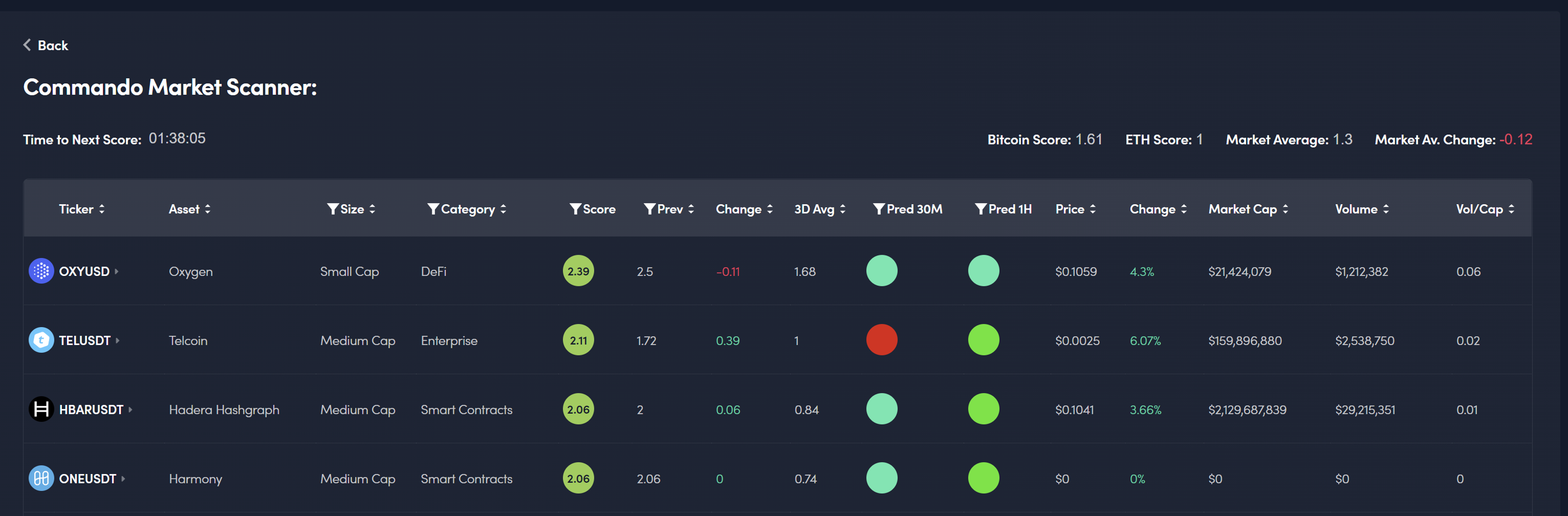 Figure 7: Commando Dashboard highlighting long trade opportunities.