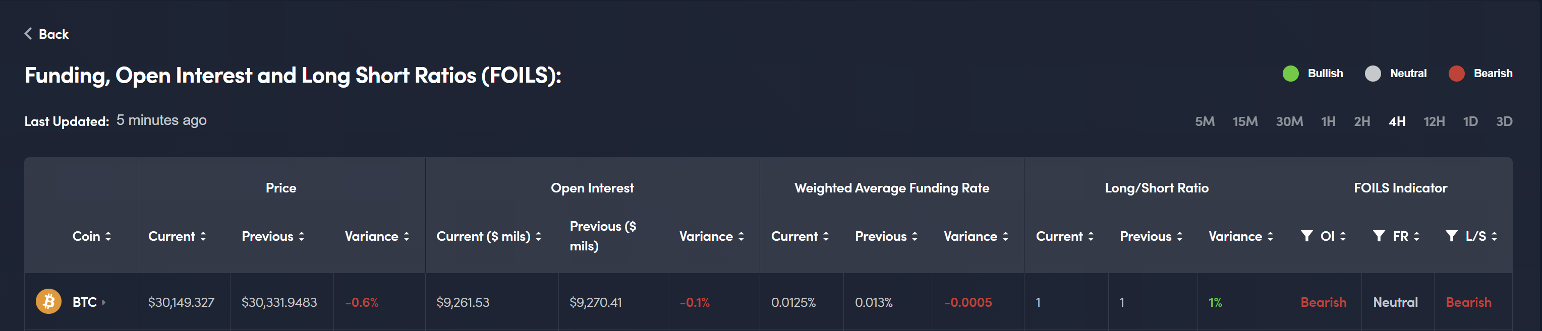 Figure 5: FOILS dashboard on 4hr timeframe for Bitcoin.