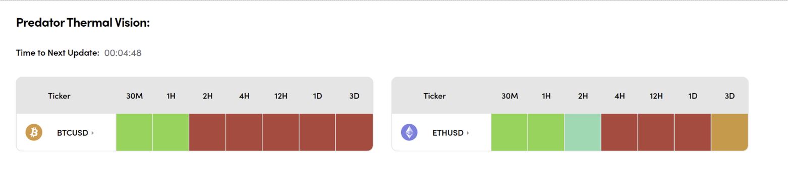 Bitcoin: Predator Thermal Vision is currently bearish across all high timeframes. It is only bullish on the 30 minute and 1 hour.
