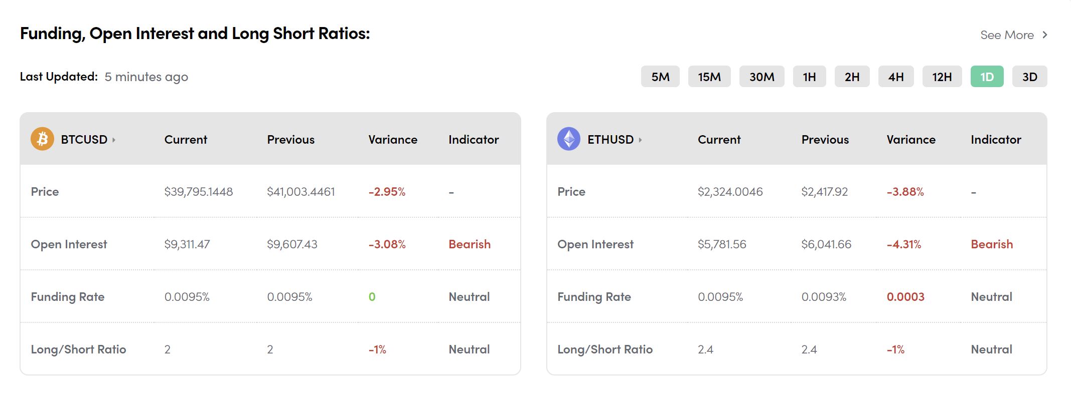 The combined FOILS daily outlook for both Bitcoin and Ethereum is BEARISH to NEUTRAL. Open Interest is climbing slightly, while funding rates and Long/Short ratio remain stable.
