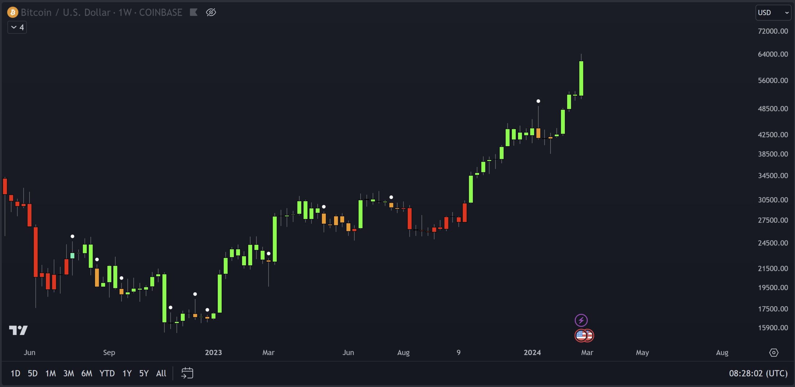 GM. Bitcoin price acceleration cools down after a wild few days. Current price is $61,410. Bitcoin now close to previous all-time-high levels as anticipation builds around latest ETF flow numbers.