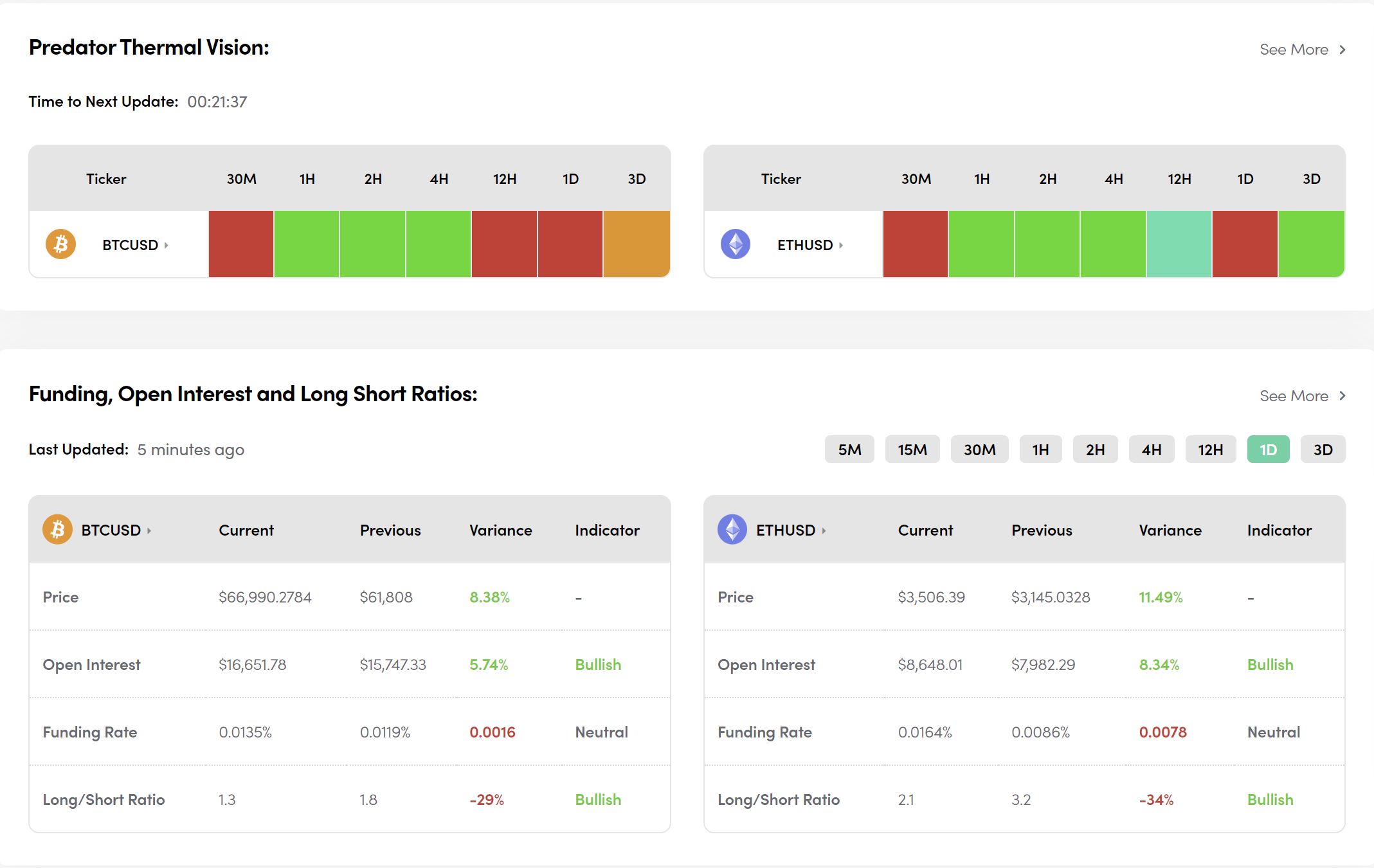 Ethereum: Predator Thermal Vision is bullish on most timeframes with the exception of the Daily and 30 minute timeframes.